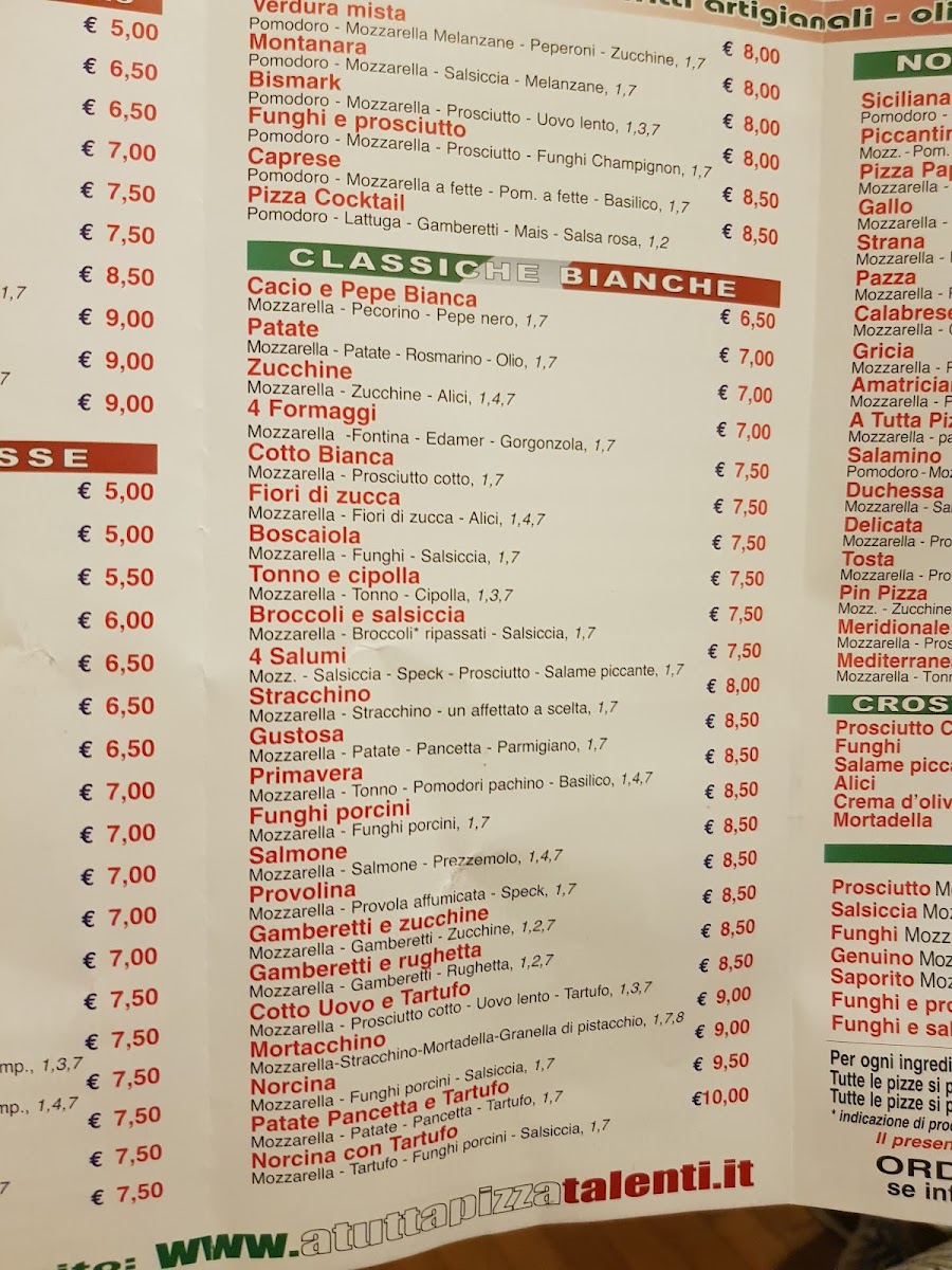 The menu at A Tutta Pizza Talenti reflects a focused, no-nonsense approach to Roman pizza, where classic recipes are treated with respect rather than unnecessary reinvention. Among the standout choices, Pizza Capricciosa clearly represents the kitchen’s philosophy: a well-balanced combination that feels familiar yet carefully executed, allowing each topping to play its role without overpowering the base. The dough comes across as thoughtfully prepared, providing a solid foundation that supports the toppings while maintaining a pleasant texture. What makes the menu appealing from a reviewer’s perspective is its clarity-there’s an emphasis on recognizable pizzas done properly, rather than an overwhelming list of options. Pizza Capricciosa, in particular, works as a reliable reference point for the overall menu quality, showing attention to balance, portioning, and flavor harmony. Taken as a whole, the menu leaves the impression of consistency and confidence, making it easy for diners to understand what the restaurant does best and why its pizzas remain satisfying choices for both locals and repeat visitors.